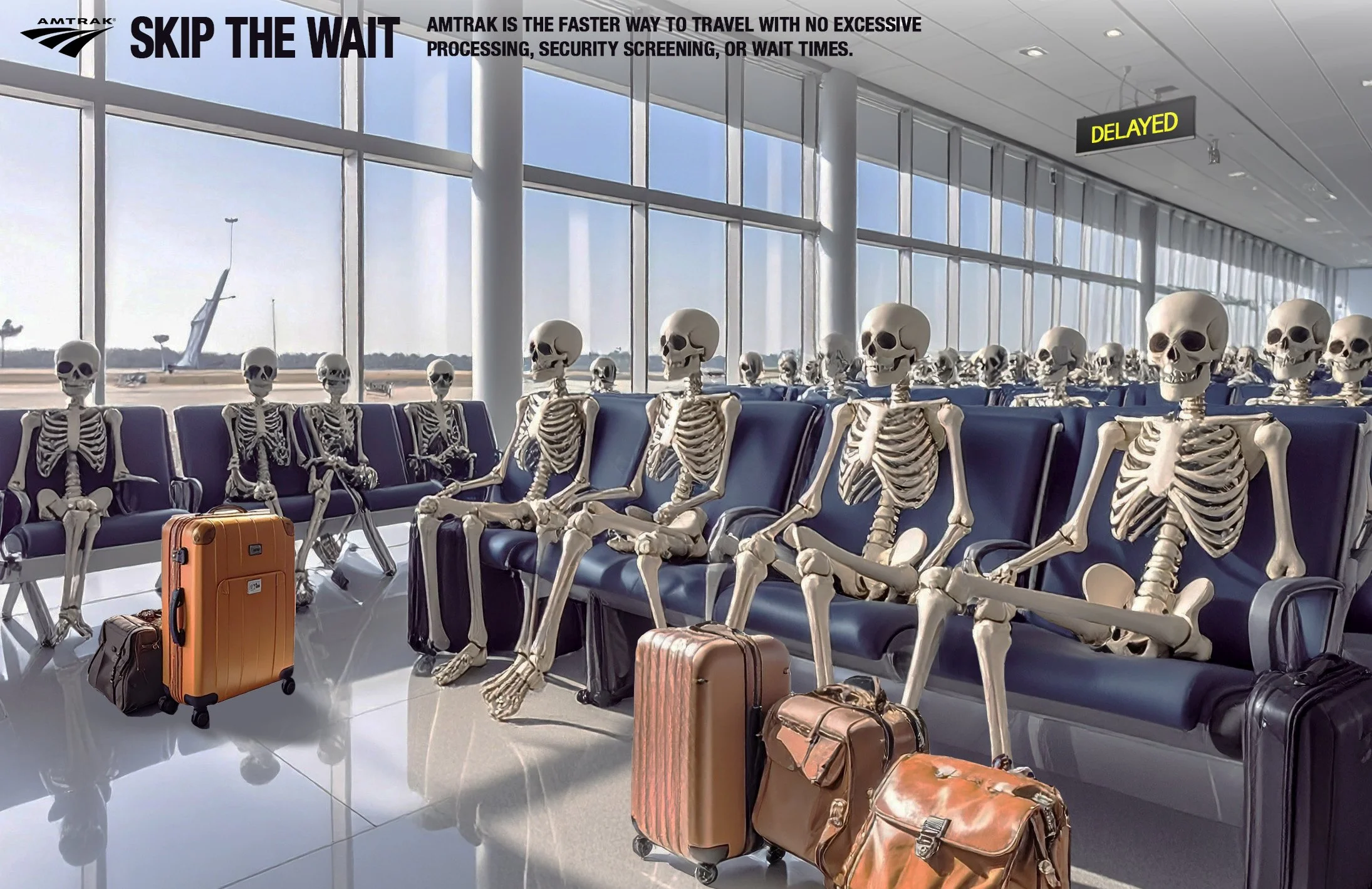Amtrak Amtrak Amtrak Insight: 18-24 year olds are impatient when traveling.Big Idea: Airplanes and airports make you wait so long you could practically pass away.